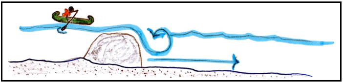 A sous hole—“reversal” or “keeper”—occurs when river water flows over a barely sunken boulder and drops into a suction hole, reverses on itself, slamming you and your boat—should you get caught in one—down, backward, and around and around. “Maytagging” is the action and the term. At last resort, to save your life (per pretrip instructions), shed your lifejacket and dive for the bottom where the current is flushing downstream.